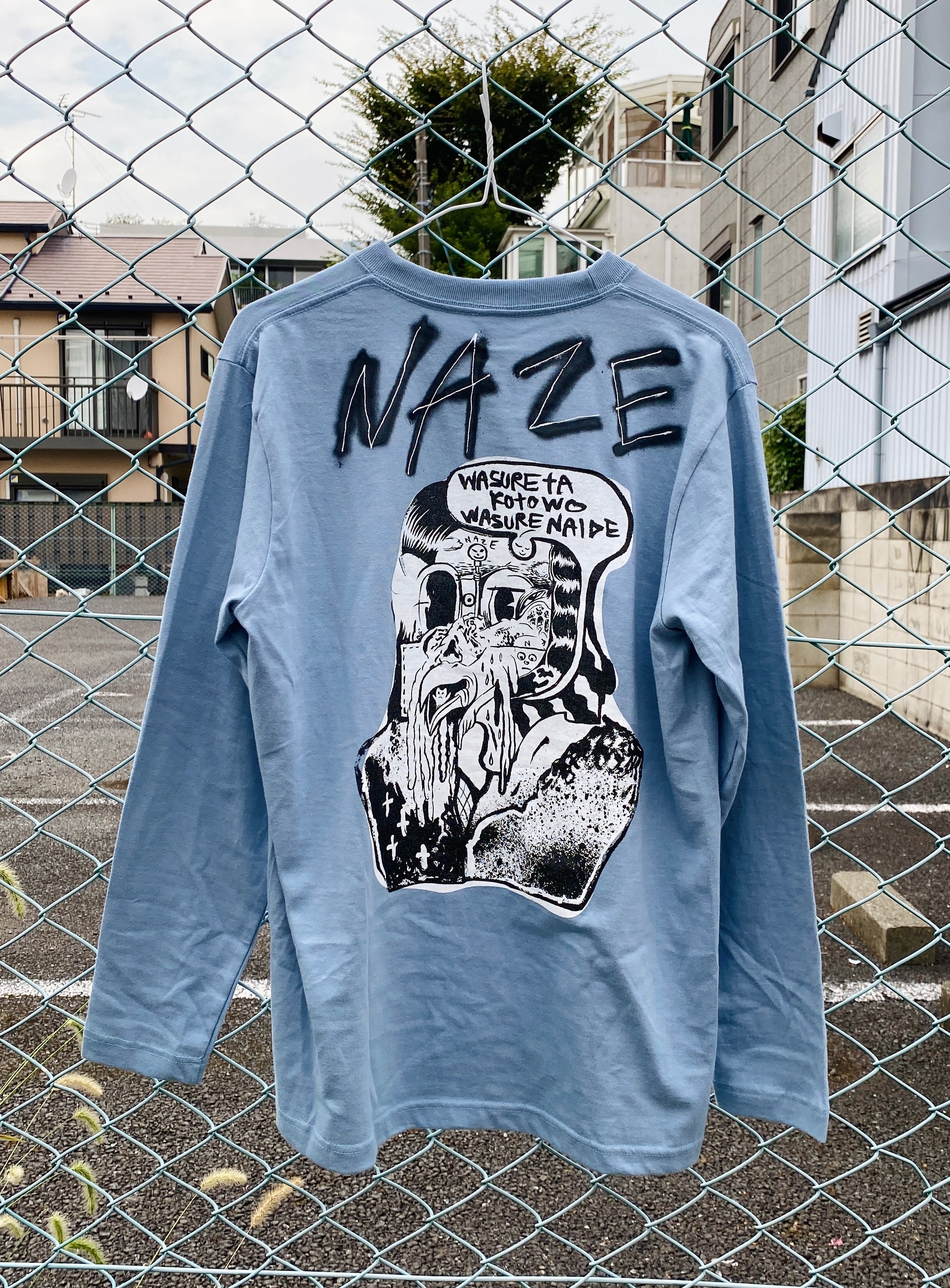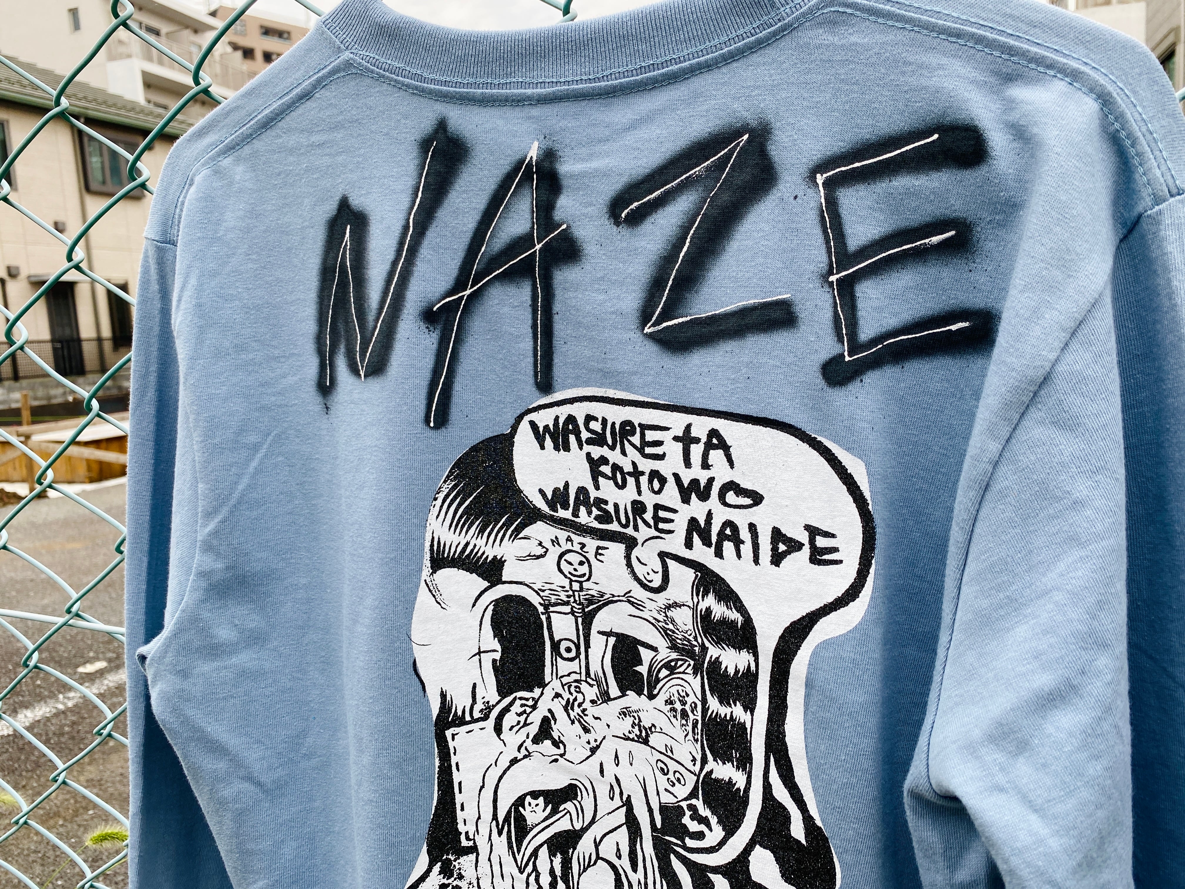 さらに1枚1枚、バックプリントの上部に直筆のNAZEサインが施されています。そのため1枚1枚微妙に変化していますのでご了承くださいませ。