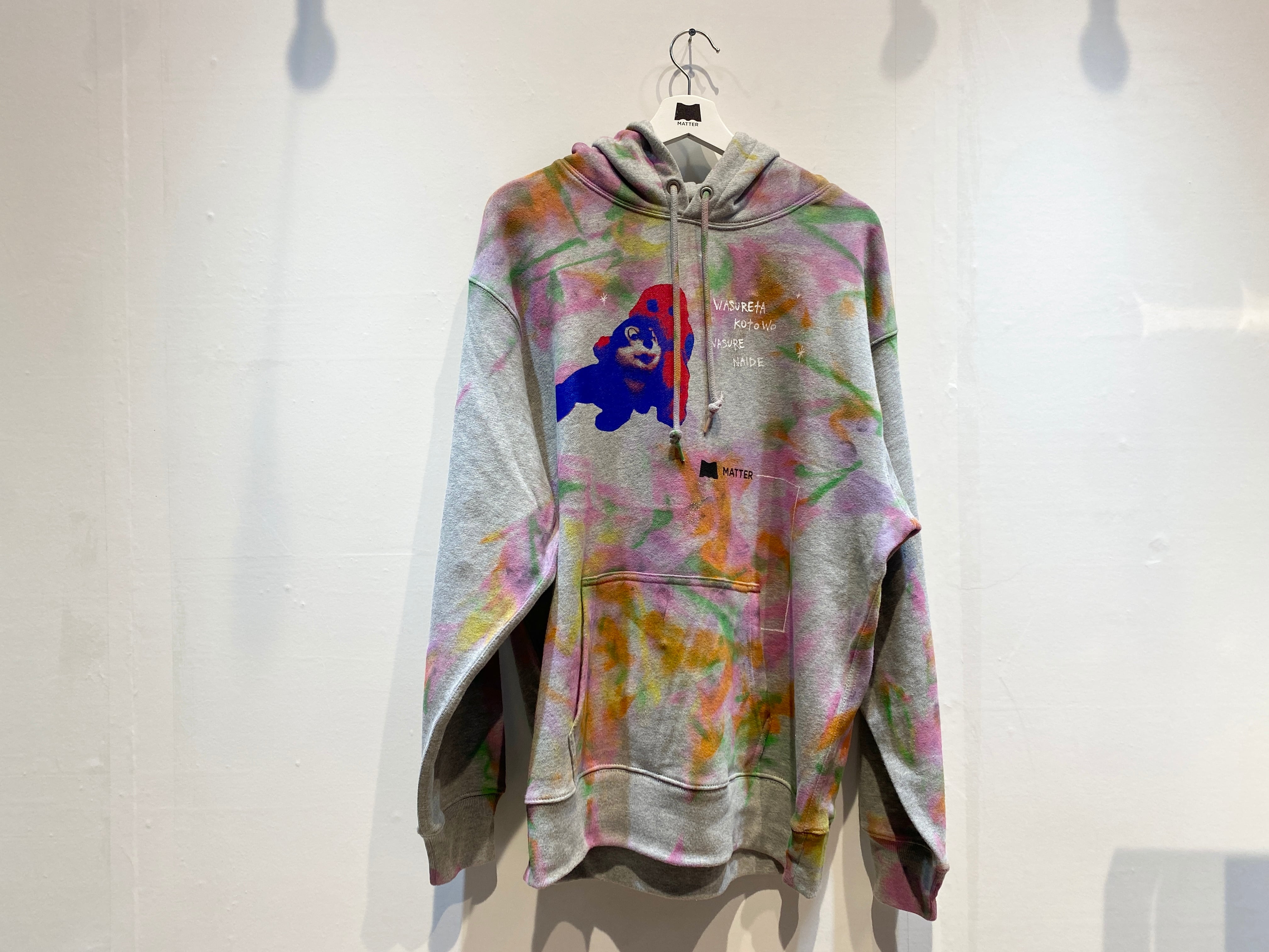 NAZEさんとMATTERのコラボパーカーができました!無地の状態からスプレーやペインティング、シルクスクリーンを重ねて作り上げた一点物の服となります。 サイズ : XL カラー : グレー